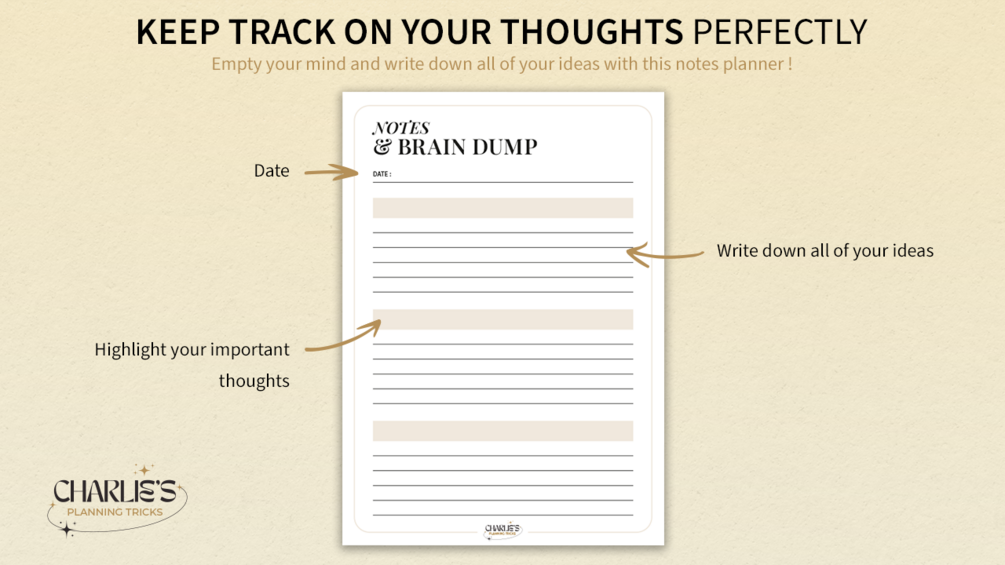 🌟 Empty your mind and write down all of your ideas with this FREE Notes & Brain Dump Planner !