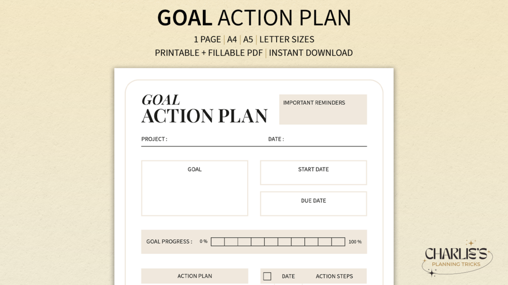 🌠MINIMALIST GOAL ACTION PLAN CREATED BY CHARLIE’S PLANNING TRICKS - PRINTABLE AND FILLABLE PDF🌠